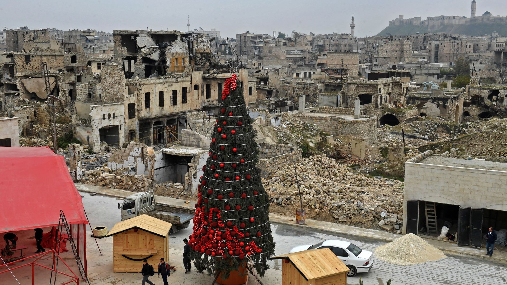 A Christmas tree in Aleppo, Syria. Photo: AFP via Getty Images