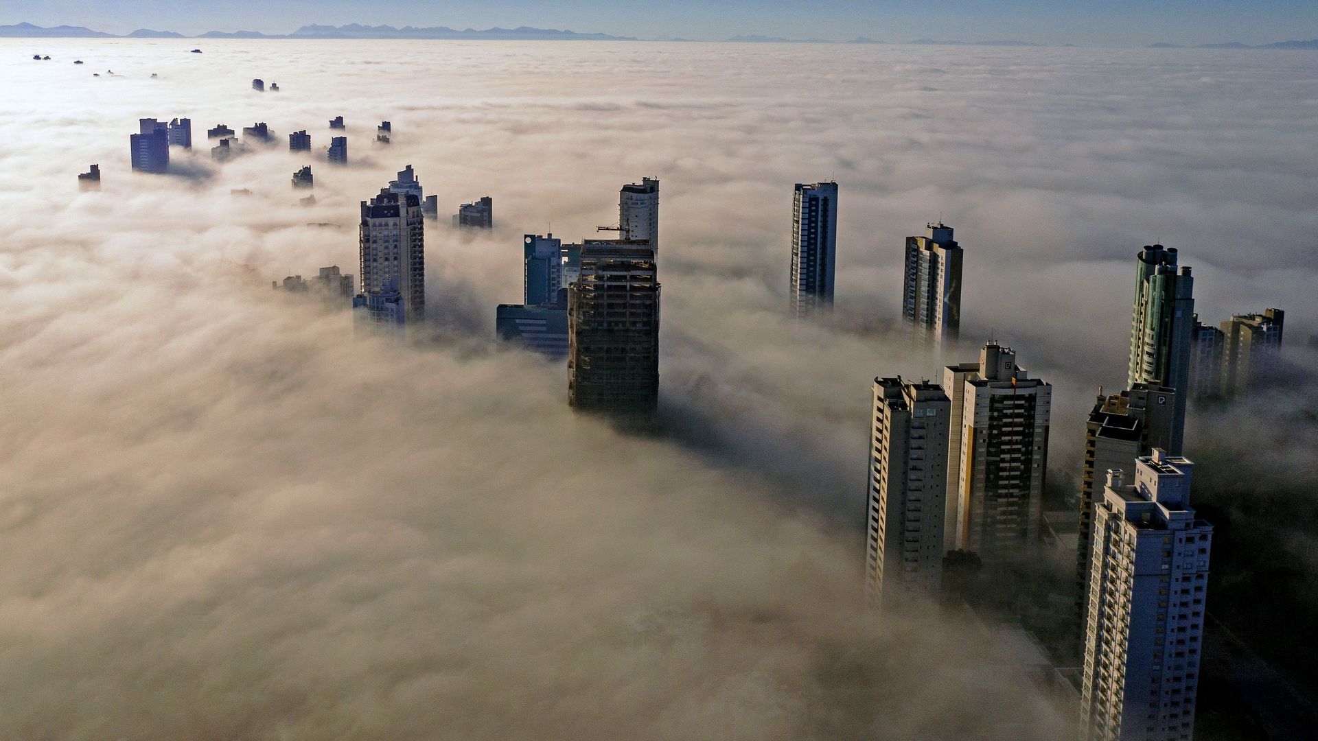 Hopscotch for giants, on a foggy day in Curitiba, Brazil. Photo: Daniel Castellano/AFP via Getty