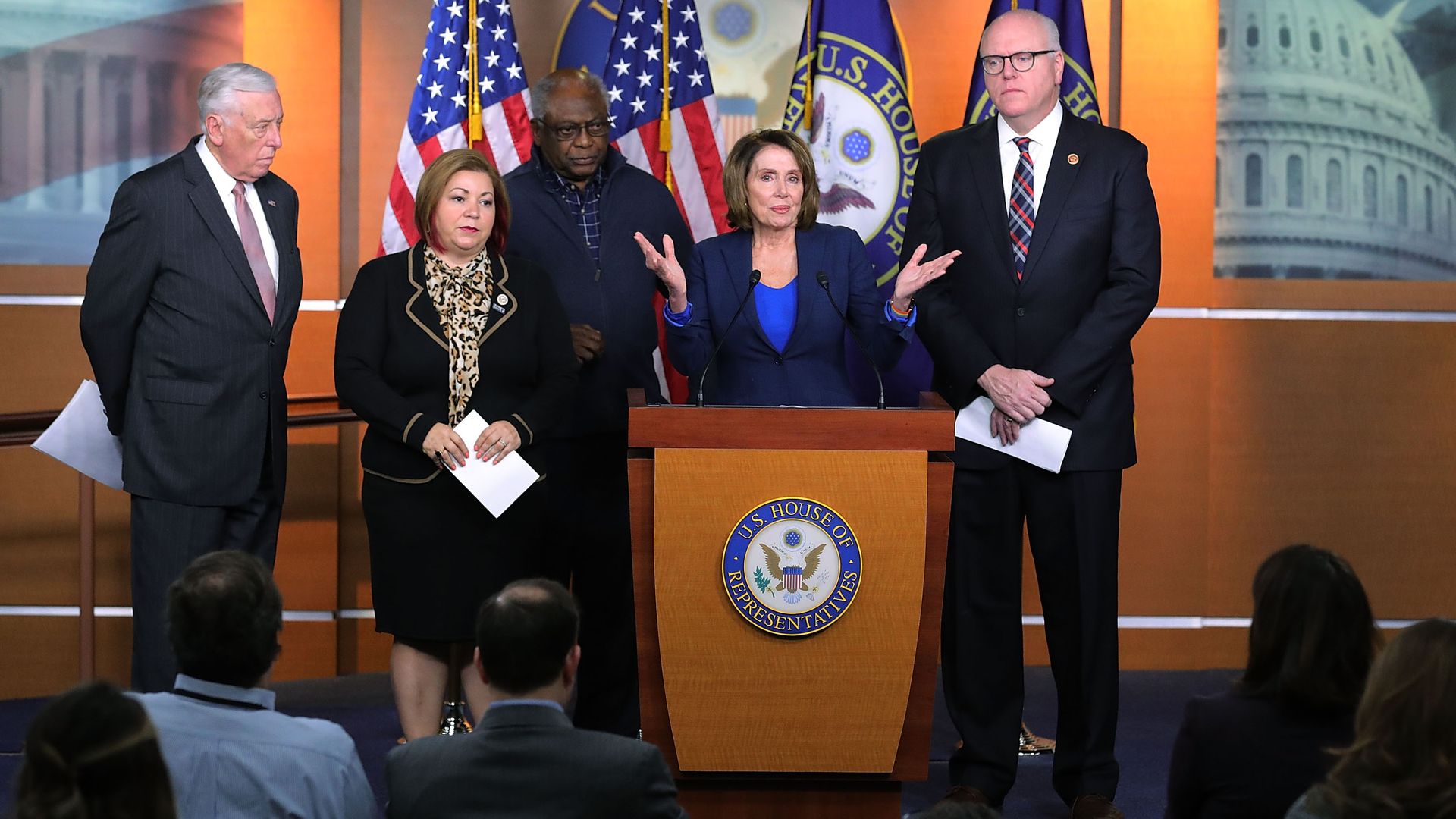 Nancy Pelosi (middle) with Rep. Linda Sanchez (left), Steny Hoyer (left) and Jim Crowley (right). Photo: Chip Somodevilla/Getty Images