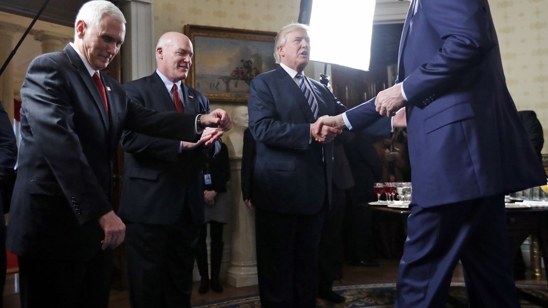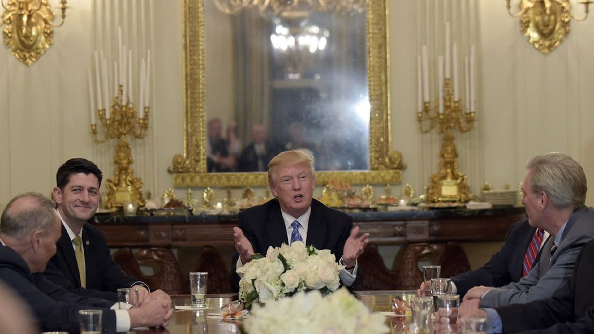 Who was there: Mitch McConnell, John Cornyn, Paul Ryan, Kevin McCarthy, Chuck Schumer, Dick Durbin, Nancy Pelosi, Steny Hoyer, Mike Pence, Reince Priebus, Jared Kushner, Steve Bannon, and Trump.