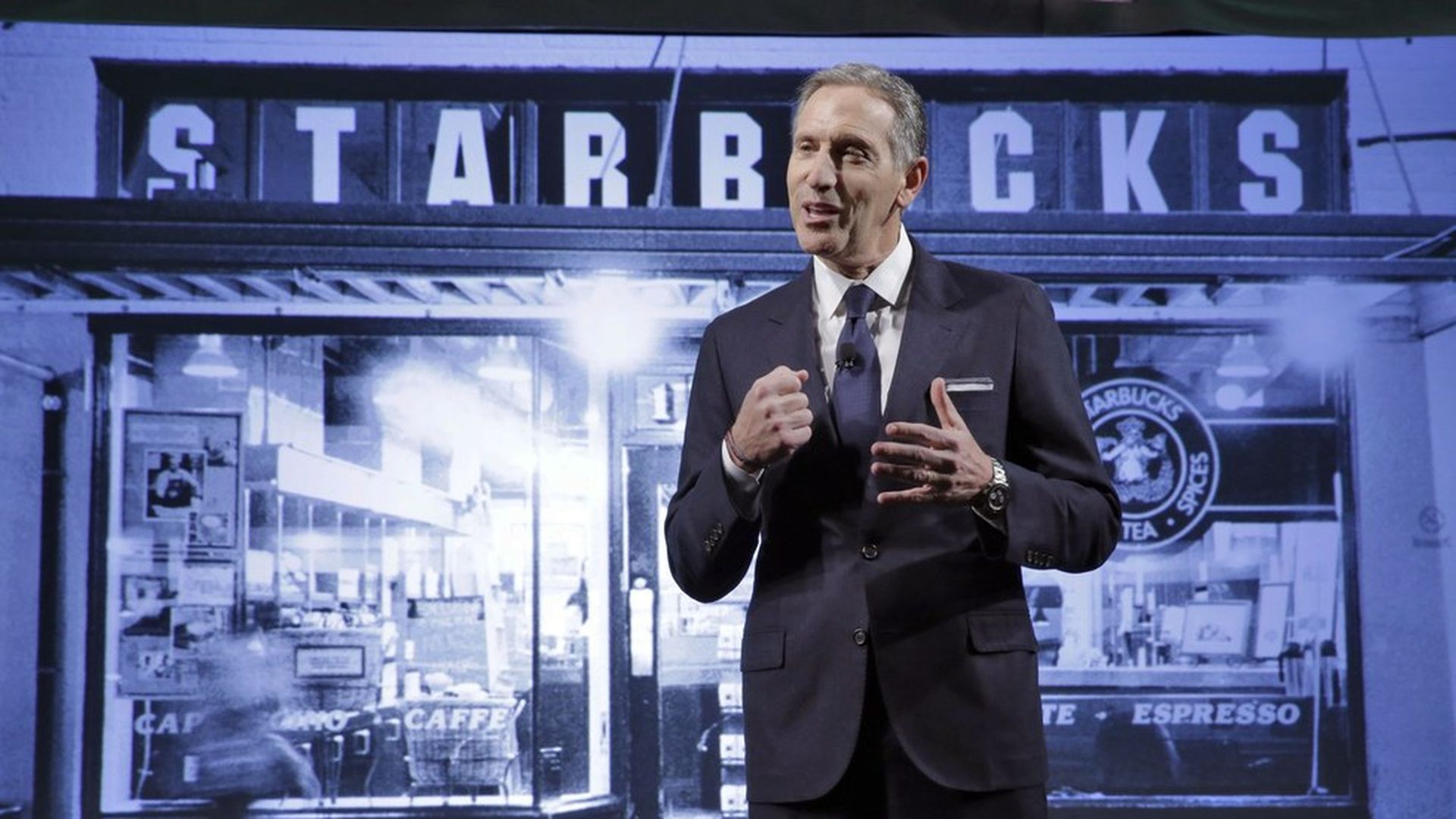 "We are in business to inspire and nurture the human spirit, one person, one cup and one neighborhood at a time," Schultz said, "whether that neighborhood is in a Red State or a Blue State; a Christian country or a Muslim country; a divided nation or a united nation. That will not change. You have my word on that."