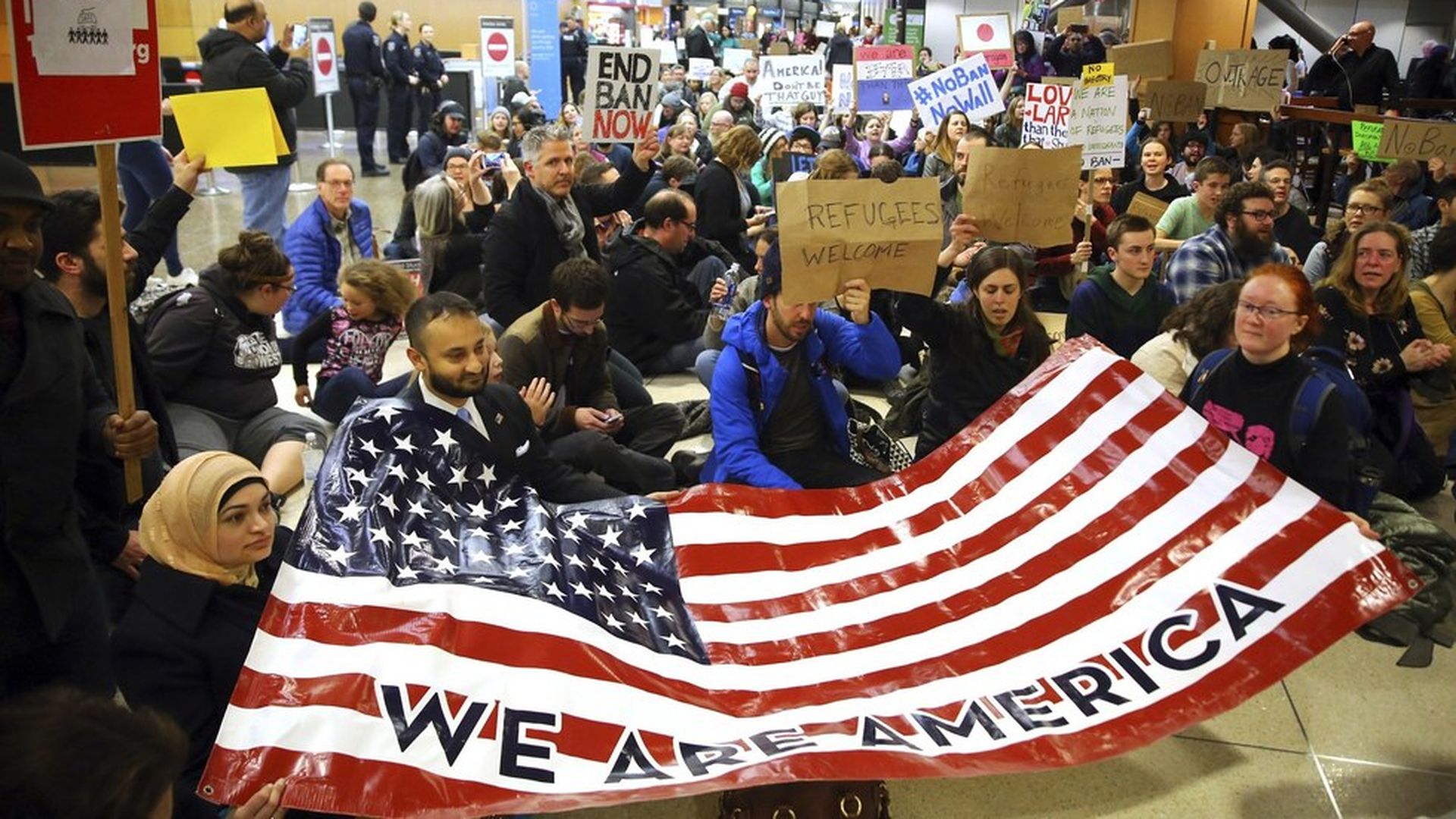 Sights and sounds from cities across the country, where massive crowds have gathered at airports to demand the release of refugees stranded by President Trump's executive action barring people from seven nations entry to the U.S.