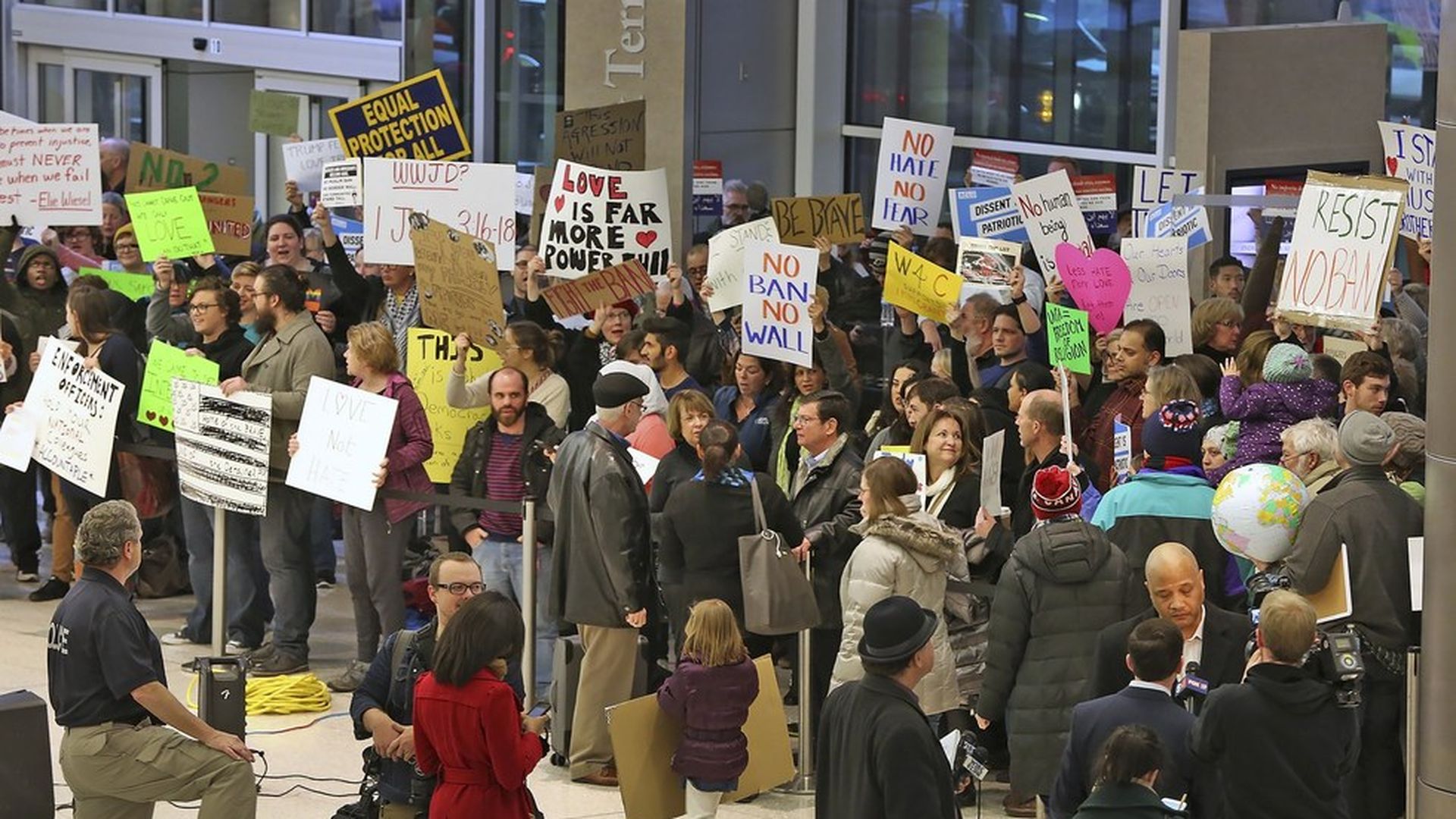 The president, in a series of three tweets Monday, addressed Americans who are protesting his temporary ban on refugees from seven Muslim-majority nations: