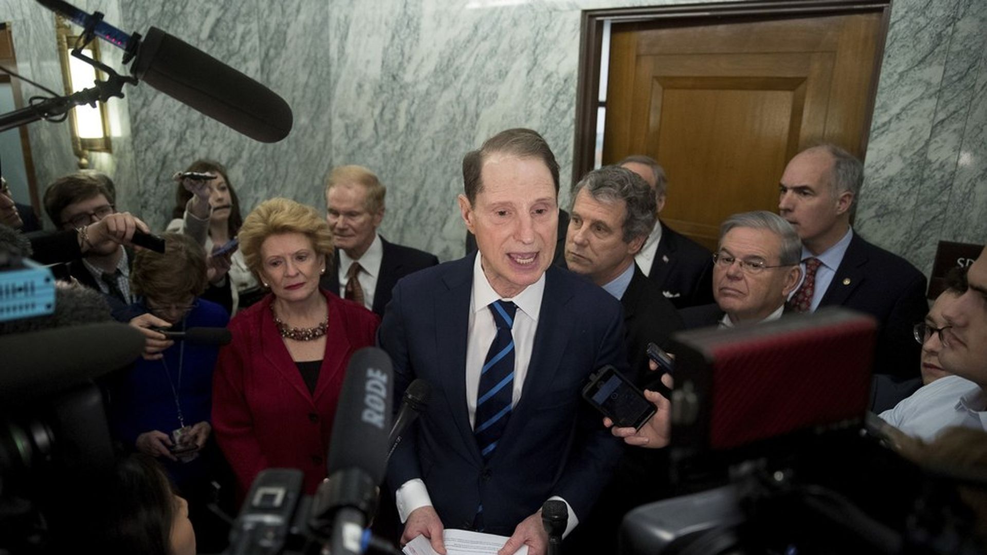 "At a minimum, I believe the committee should postpone this vote" and have an opportunity to talk to officials at the biotech company, Sen. Ron Wyden, the top Democrat on the committee, told reporters. He said they'll be willing to move forward on Price and Treasury nominee Steven Mnuchin only after their questions are answered — especially on Price, whom Wyden suggested hasn't been "straight" with the committee.