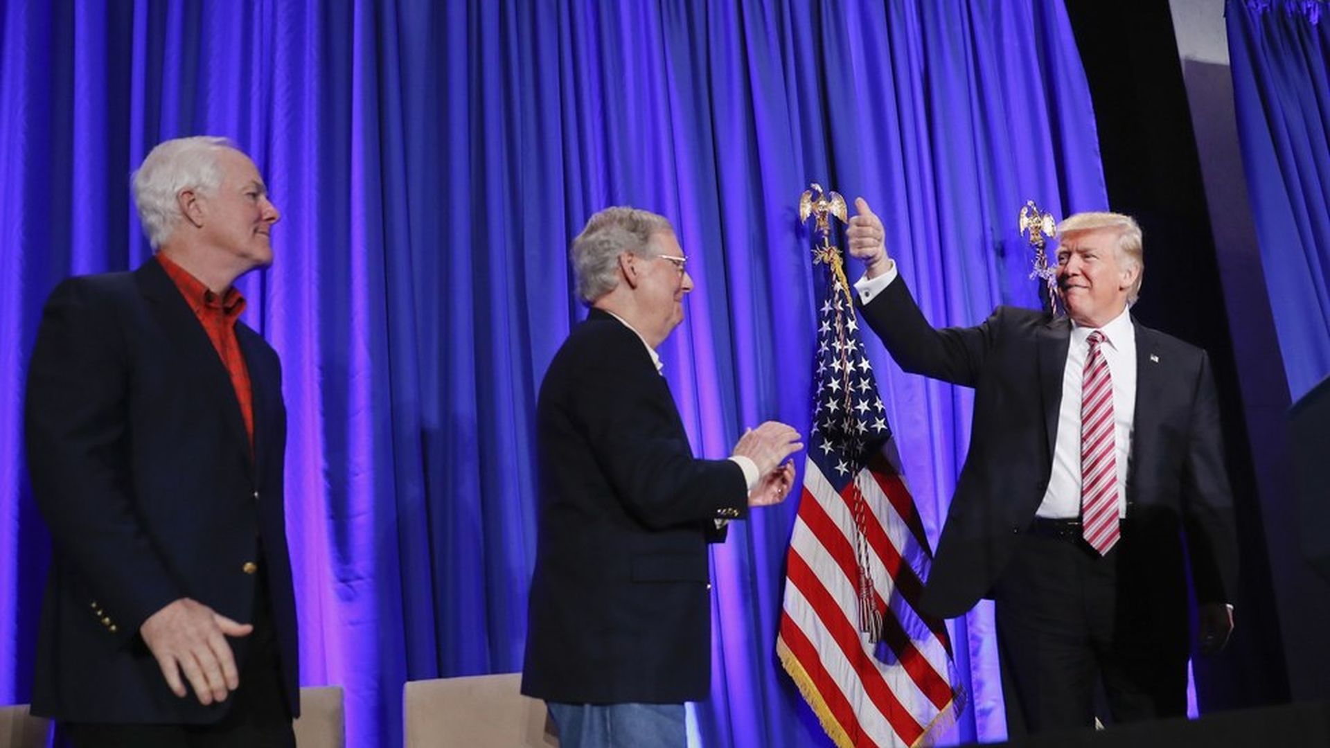 One fun thing: shortly after the Republican presser ended, Chuck Schumer had a hot take on tourists while discussing the GOP. "They've trafficked in alternative facts...they've been haphazard and downright dysfunctional," Schumer paused to shush tourists in the building. "That was tourist obstruction."