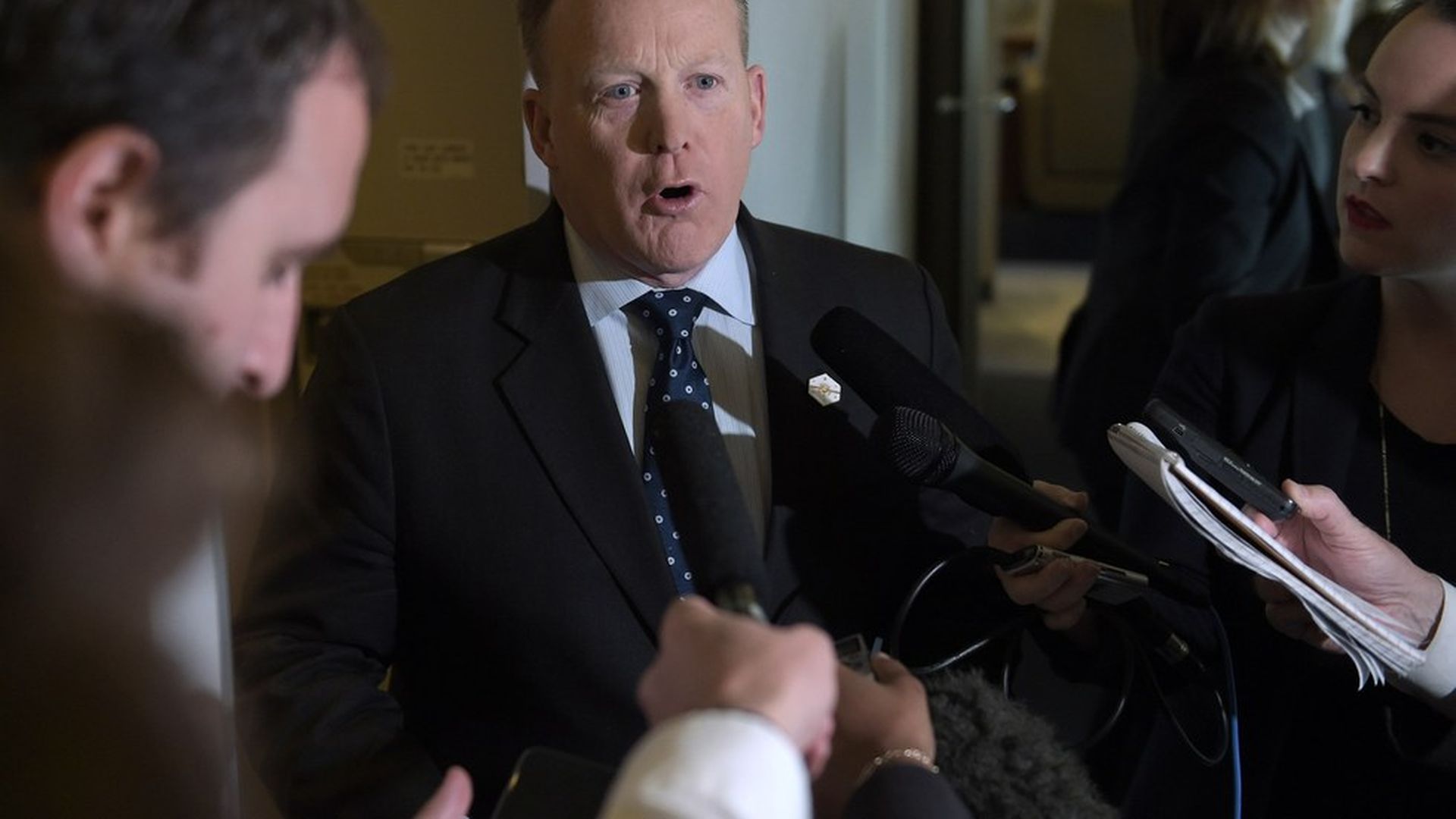 Sean Spicer had a quick gaggle with reporters on Monday as Trump flew home from Florida. He told them that Trump was "absolutely not" going to cancel the immigration executive order, and that they're not rethinking their strategy "at all."