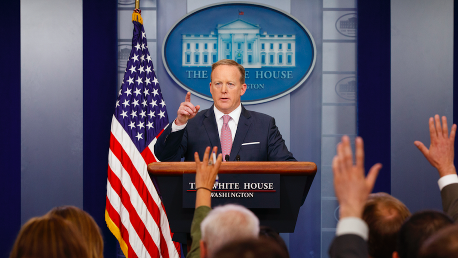 Translation: Trump is aware nobody uses actual tapes to record conversations anymore and Spicer, Sanders and Trump don't actually brief the press.