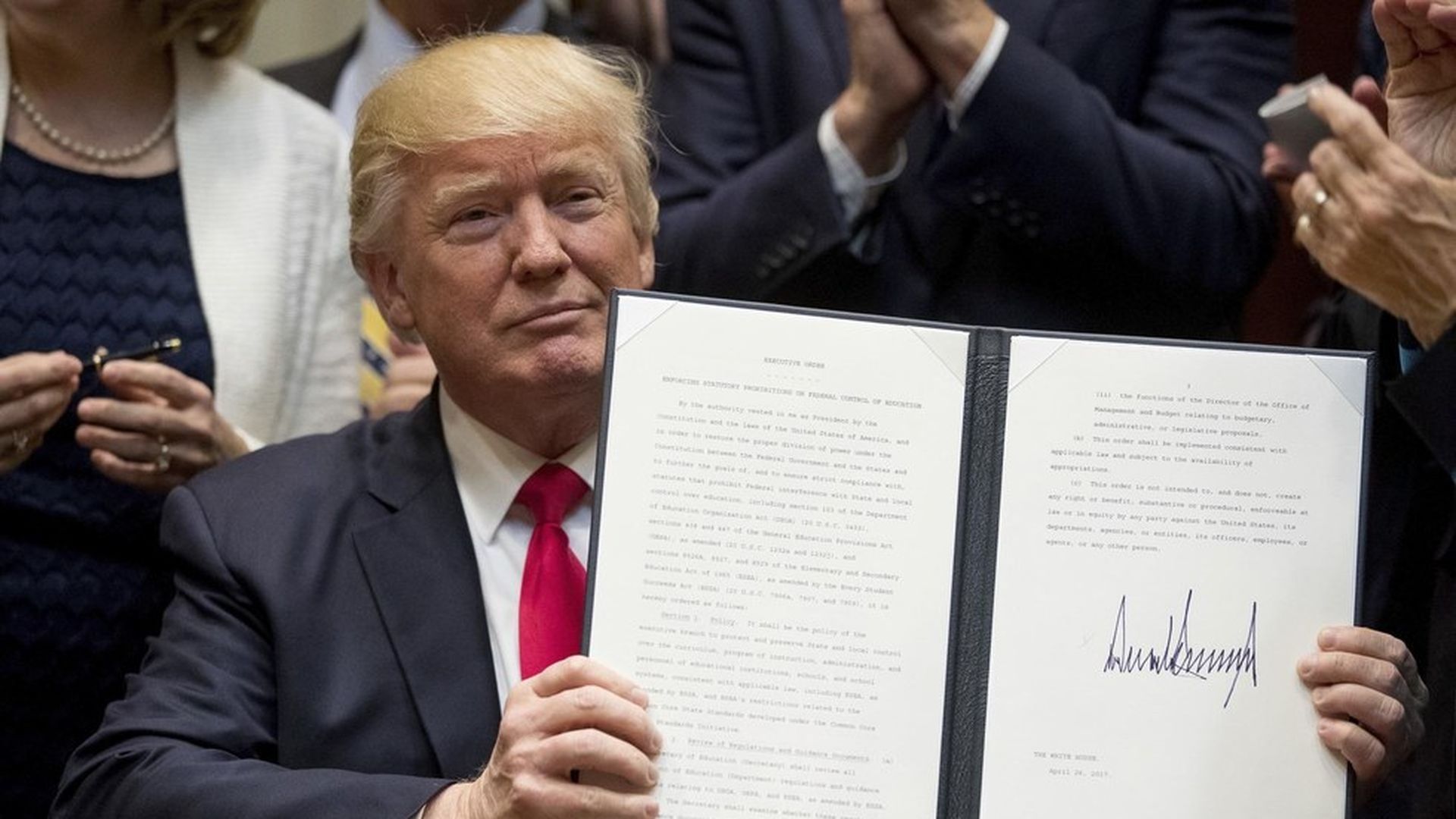 The EO details: Proclaiming that he wouldn't be in the White House without "the American worker," Trump said that today's executive order is meant to "expand apprenticeships and vocational training to help all Americans earn a rewarding career." It's meant to remove federal restrictions that have prevented some industries from implementing apprenticeship programs for their workers.