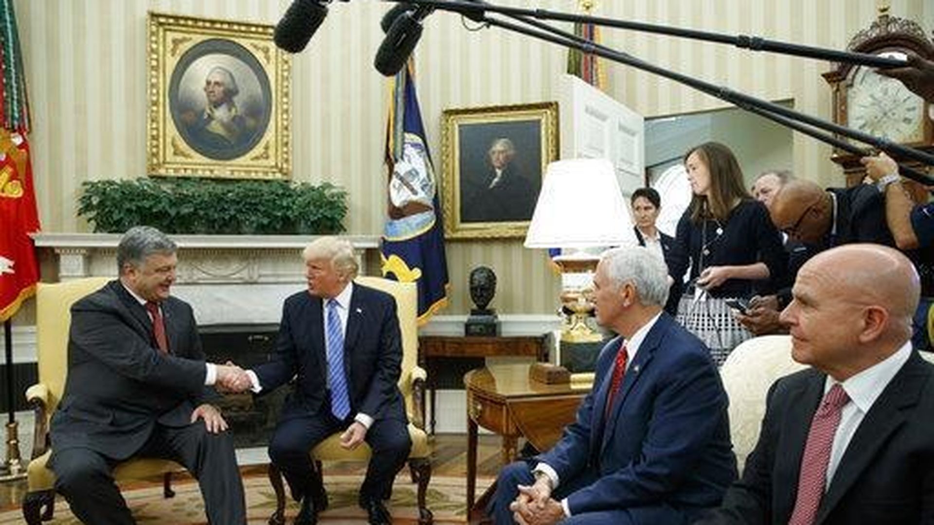 - The intrigue: This meeting was actually between Trump and his National Security Advisor H.R. McMaster — Poroshenko and VP Pence just dropped by.