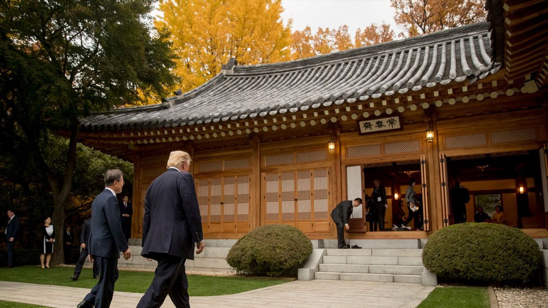 President Trump arrived in South Korea today on the next leg of his Asia trip. He'll first visit Camp Humphreys, one of the largest U.S. military installations in Asia, to meet with American and South Korean troops. He'll then head to Seoul's presidential complex, the Blue House, to meet with South Korean President Moon Jae-in for a variety of welcome ceremonies and working meetings, including a joint press conference, before settling in for a state dinner this evening.