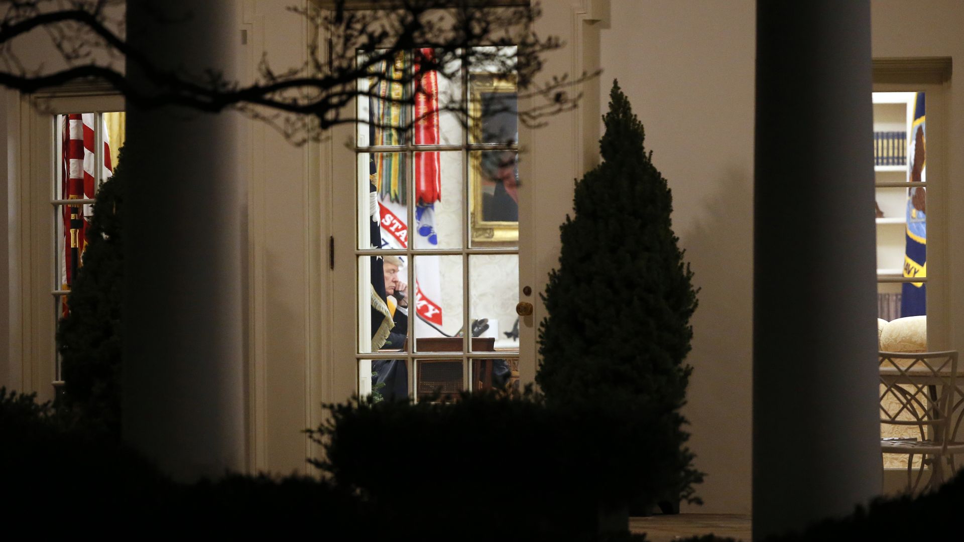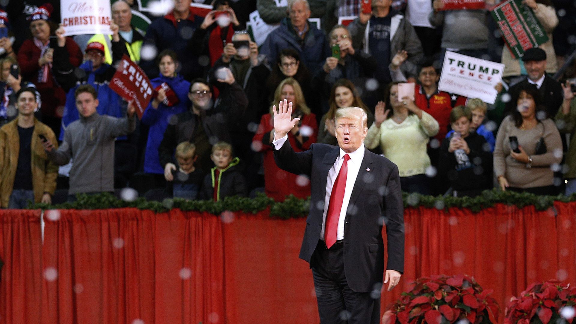 Why it matters: The backdrop to some of Trump's events sometimes seem to hold symbolic significance, whether by plan or by coincidence. Here are some other examples: