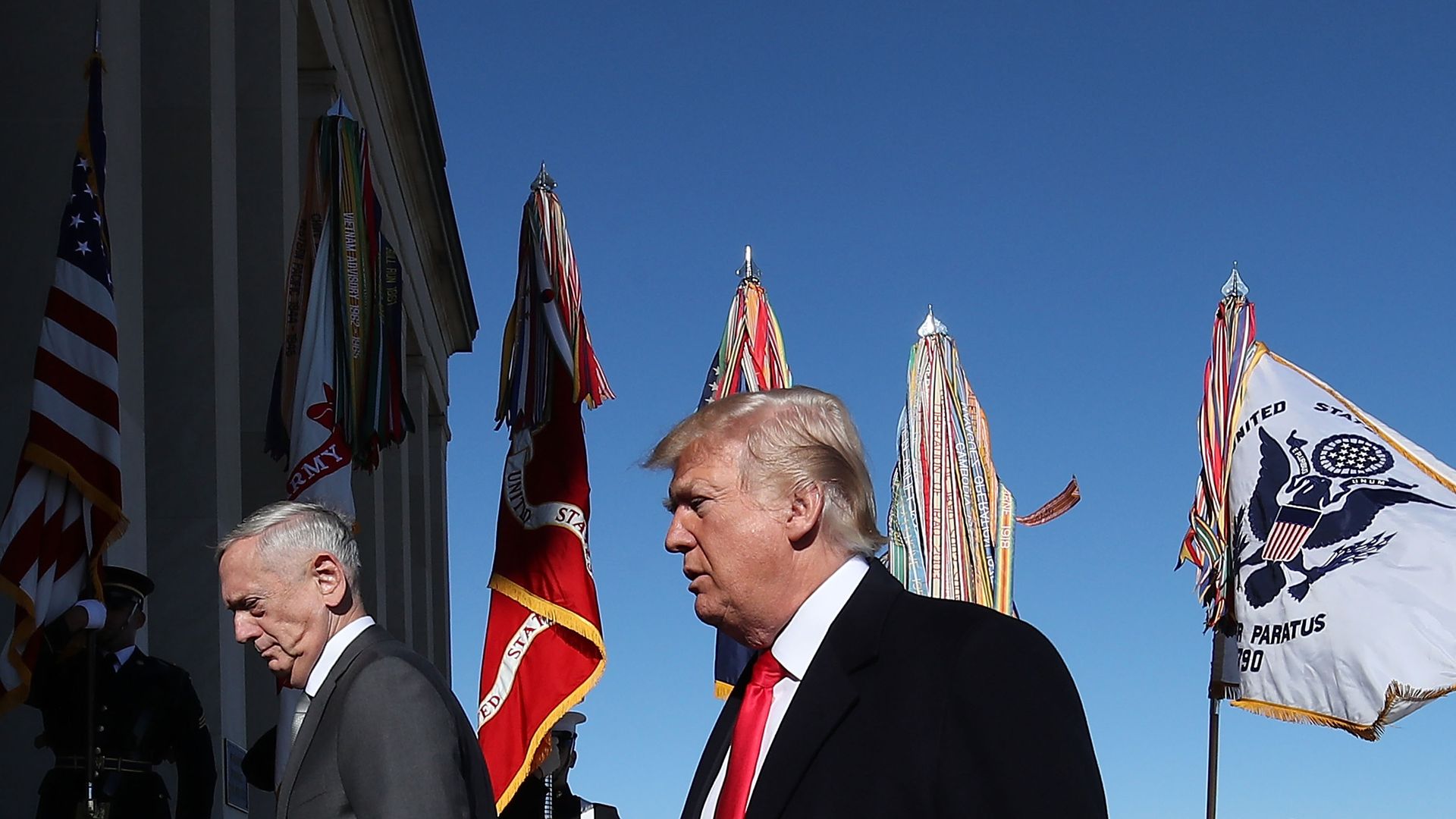 The big picture: While Mattis has denied reports that he's thinking of leaving his post at the Pentagon, Trump says on "60 Minutes" that while he hasn't been told anything, "[h]e may leave. I mean, at some point, everybody leaves." Trump also said he has "people now on standby" to fill administration positions.