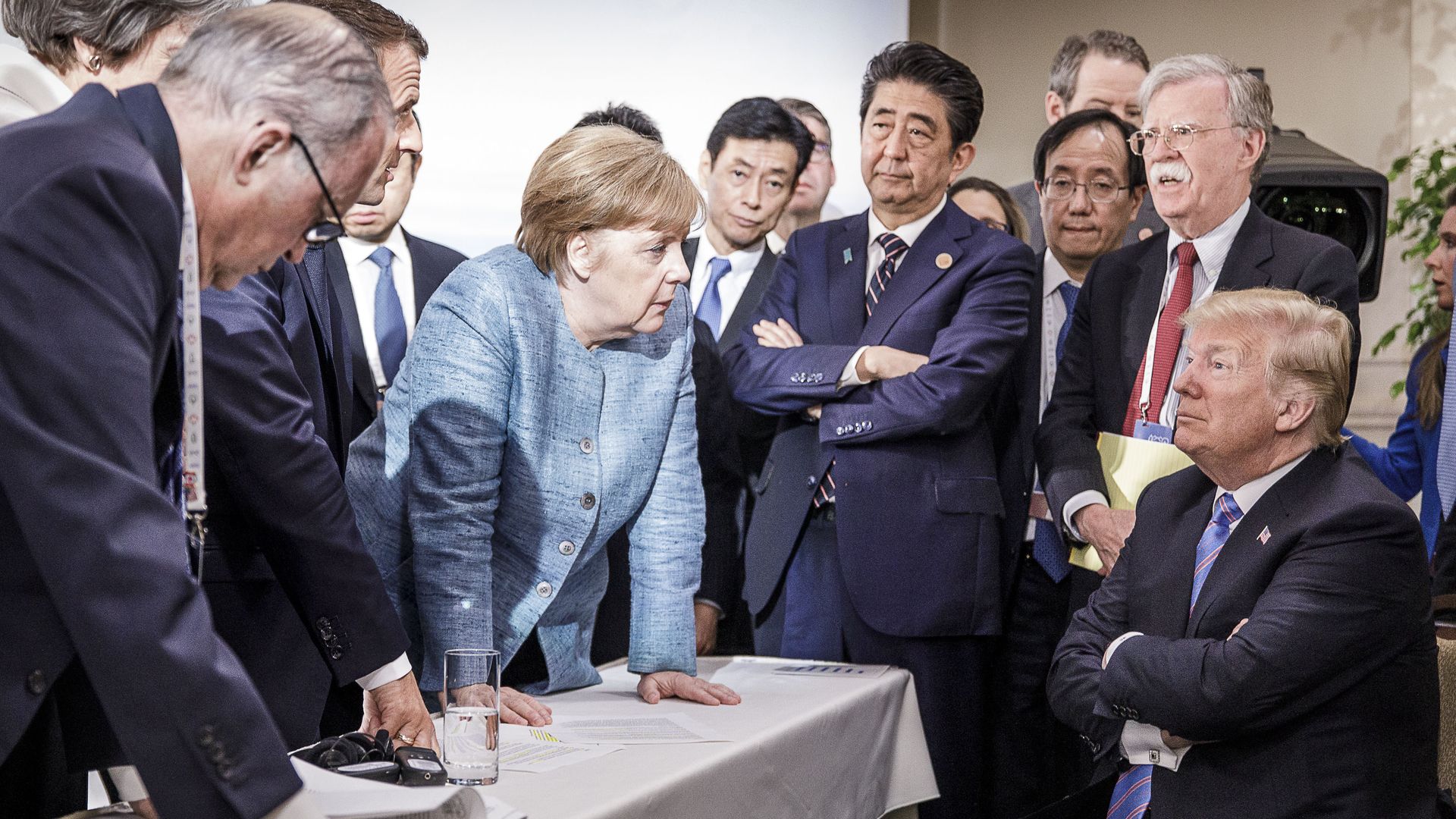 A poll designed to test President Trump’s vulnerabilitieson foreign policy finds that 56% of voters in 12 battleground states believe he has made America less respected in the world, compared to 31% who say America is now more respected.