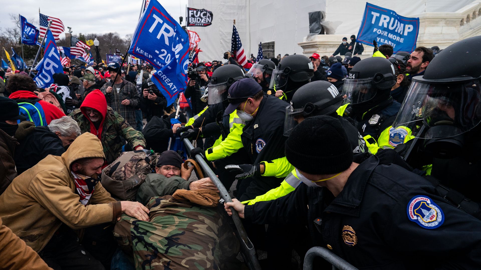Driving the news: Narayana Rheiner, 42, "pulled the riot shield out of the officer's hands, causing the officer to fall down several stairs onto the ground," per a DOJ statement.