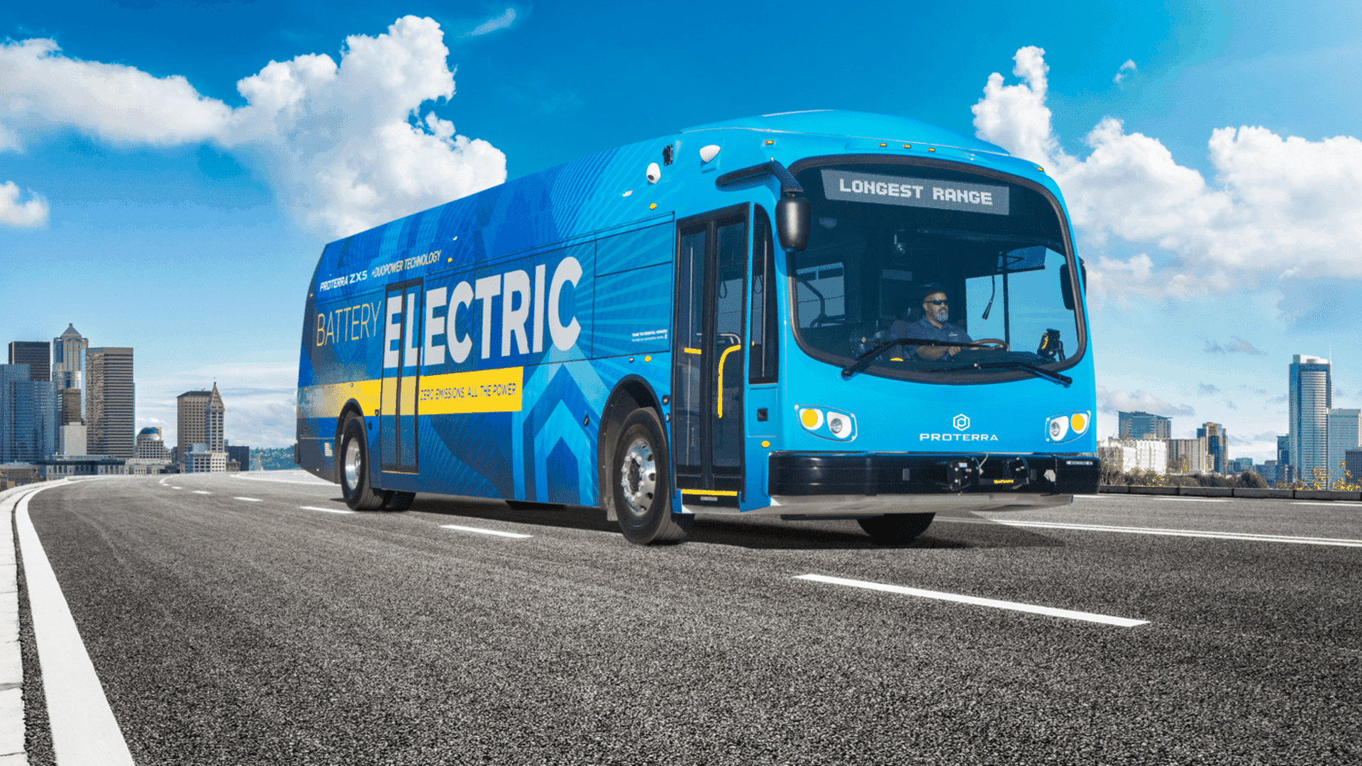 A 40-foot electric transit bus made by Proterra, courtesy of Proterra.