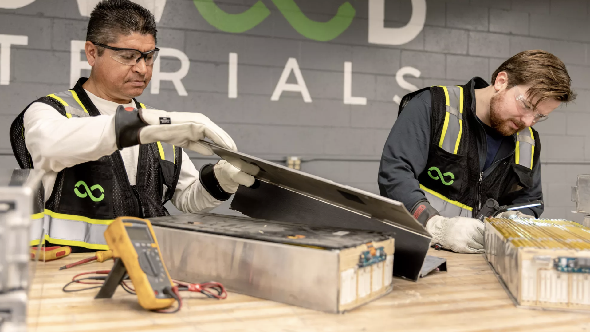Redwood Materials employees sorting batteries, courtesy of Redwood Materials.