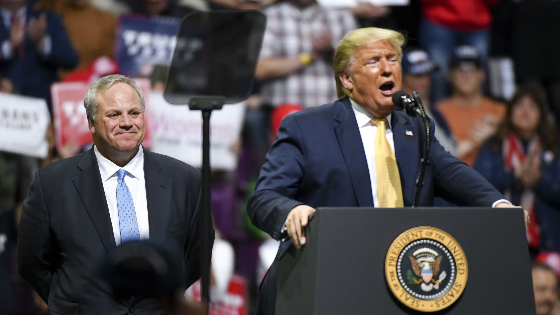 Bernhardt and Trump at a 2020 rally in Colorado. Photo: Michael Ciaglo/Getty Images