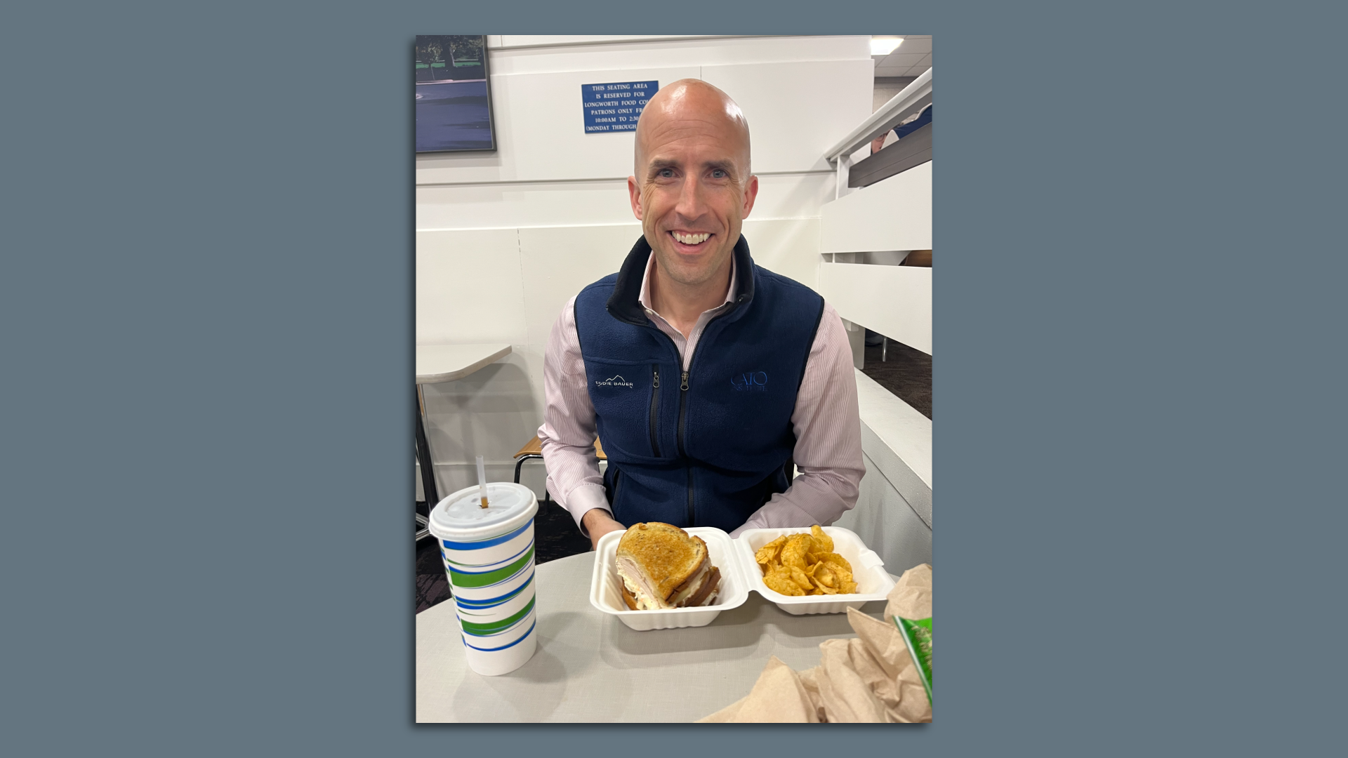 Cannon with his Rayburn Reuben in the House Longworth Cafeteria. Photo: Victoria Knight/Axios