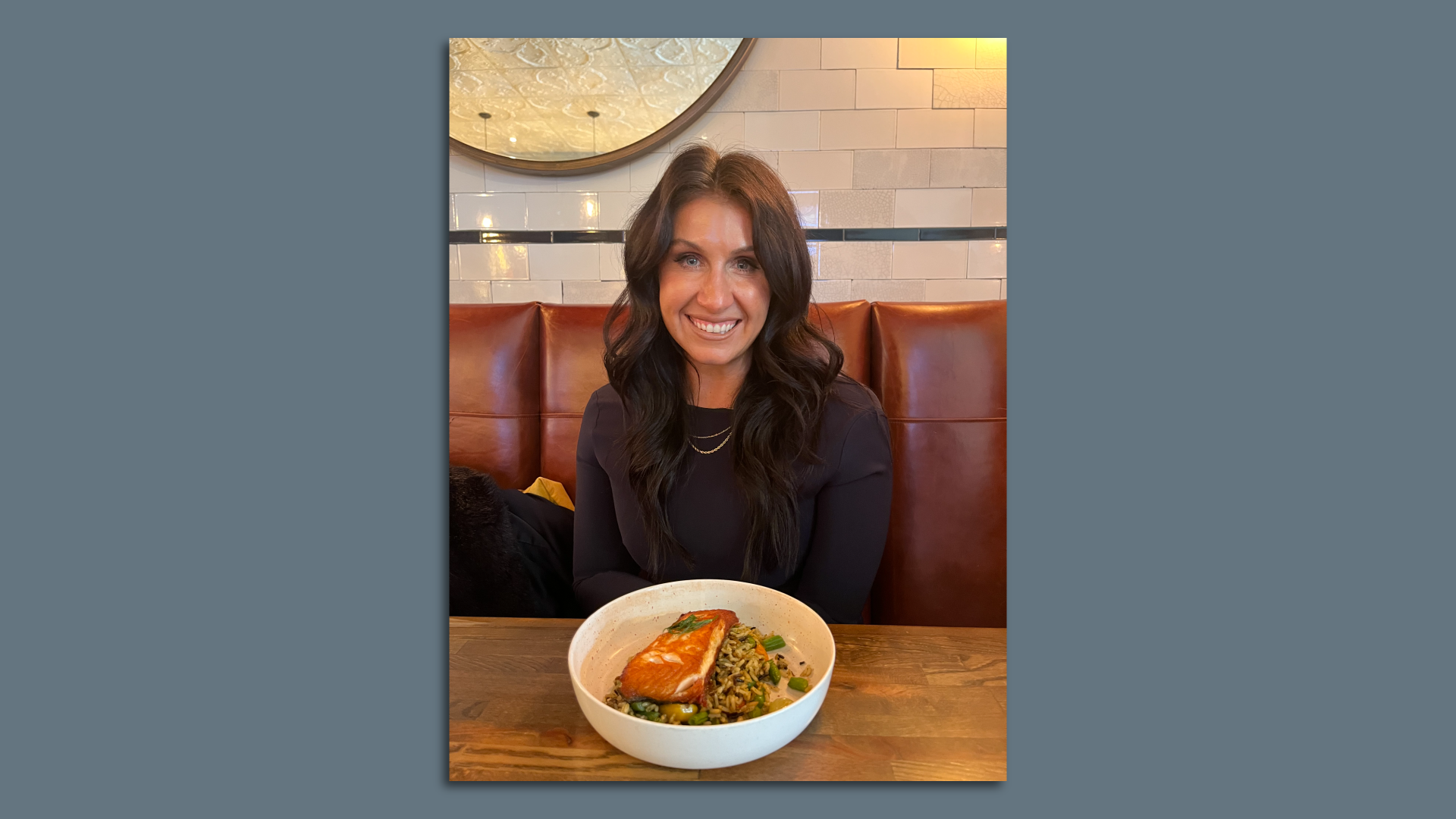 AFP's Lauren Stewart with her salmon lunch at Coastline Oyster Co. Photo: Victoria Knight/Axios