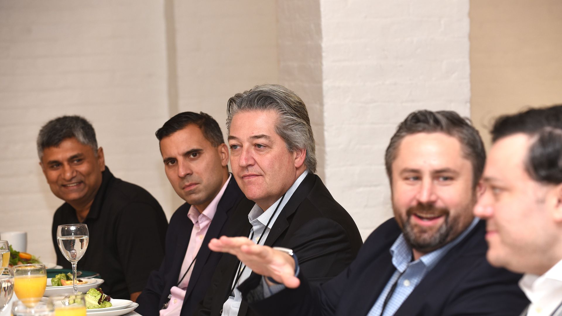 (From left) Belwadi Srikanth of Suki; Dave Kerwar of Inbound Health; Kevin Davies of Mizuho Securities; Brigham Hyde of Atropos Health; and Amer Alnajar of Vytalize Health. Photo: Beatrice Moritz