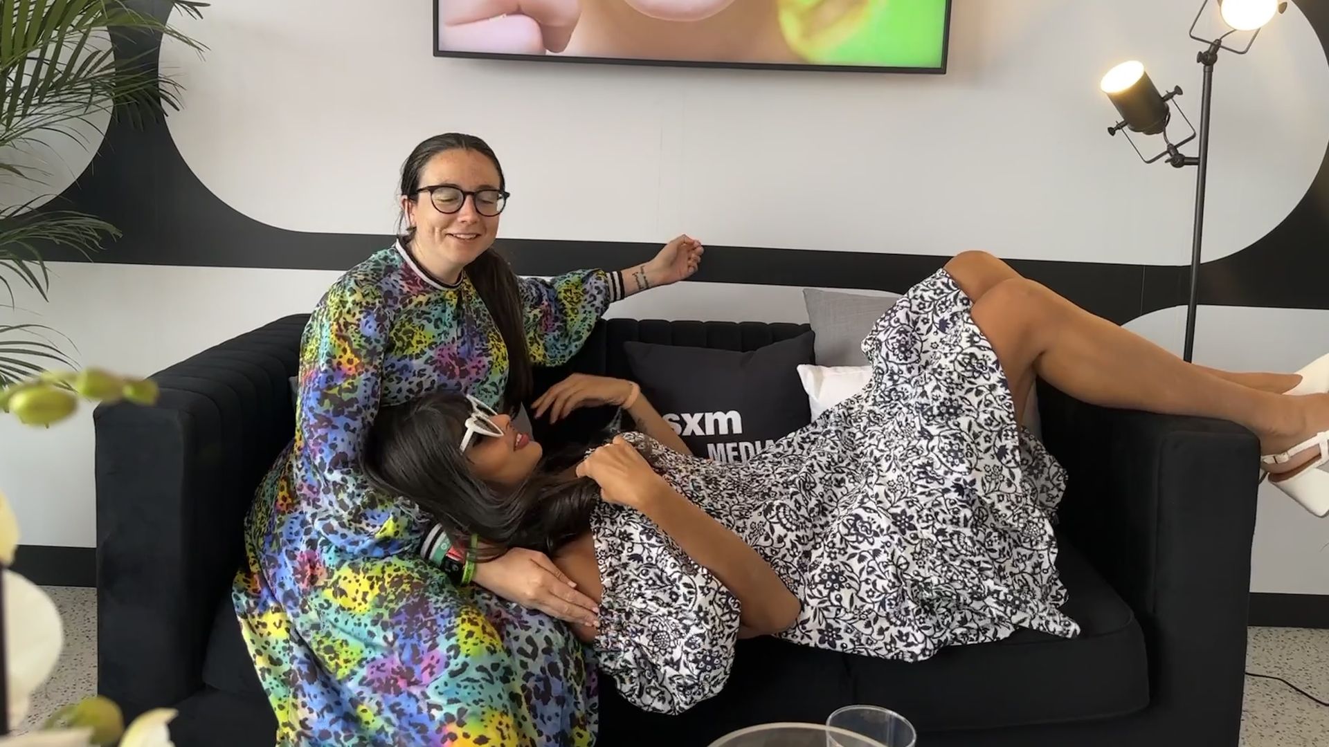 Axios' Kerry Flynn and actress and activist Jameela Jamil. Photo: Maggie Mitchell