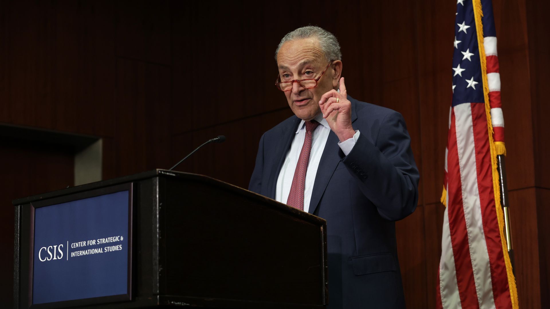 Schumer speaks at the Center for Strategic and International Studies Wednesday. Photo: Alex Wong/Getty Images