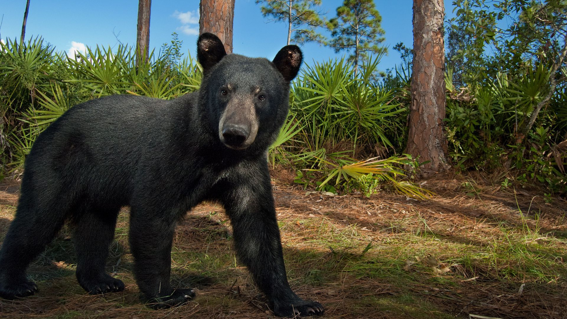 A Florida black bear pauses in front of a camera trap on the Hendrie Ranch in south central Florida. The property is a vital linkage between existing conserved lands. Image credit: Carlton Ward Jr./Florida Wild