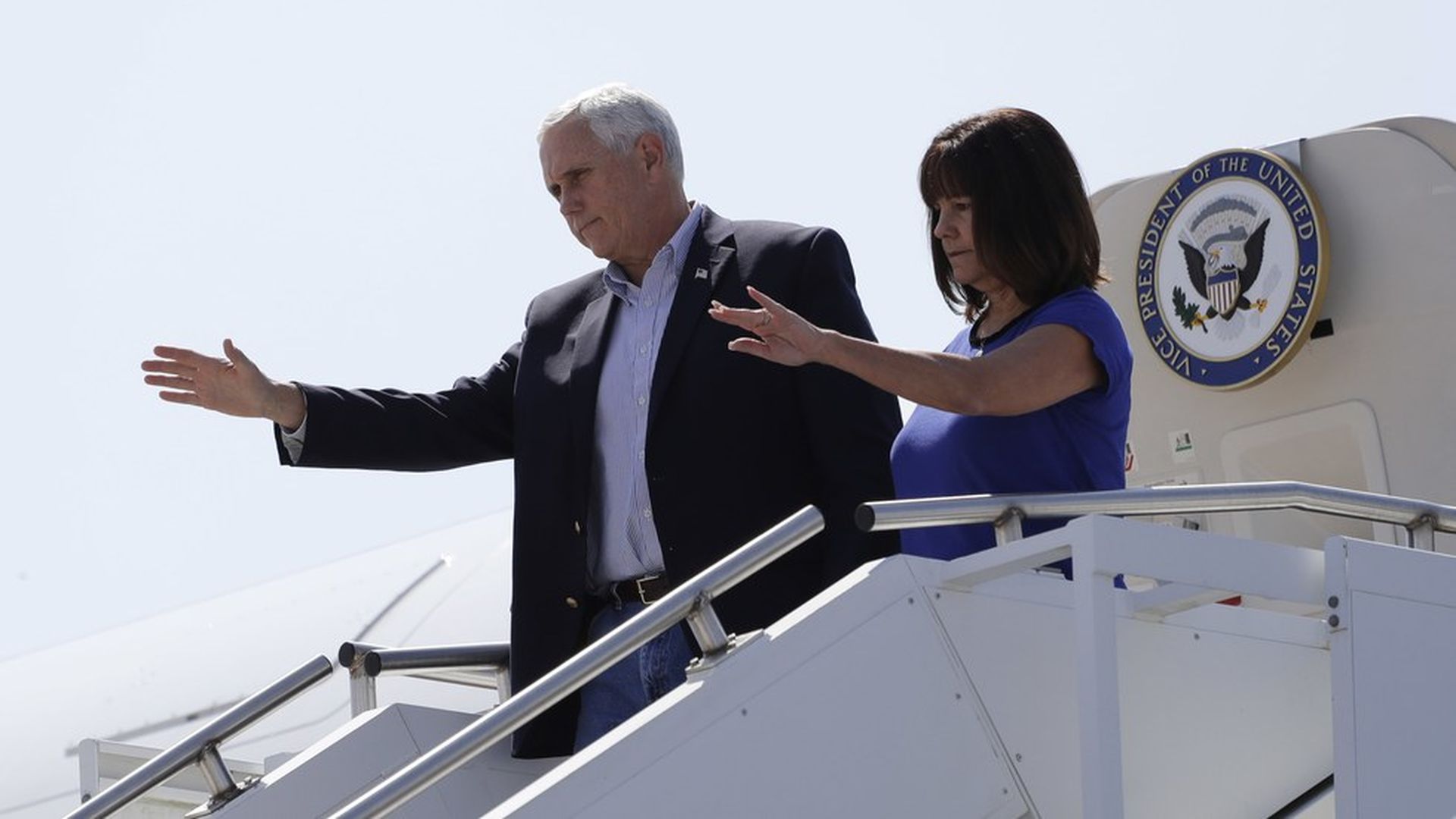 Mike Pence and his wife Karen are in Texas today visiting various residents who have been affected by Harvey. They started their trip in Corpus Christi, then headed to Rockport where they surveyed the city's wreckage and held a prayer service for victims outside of a badly damaged church.