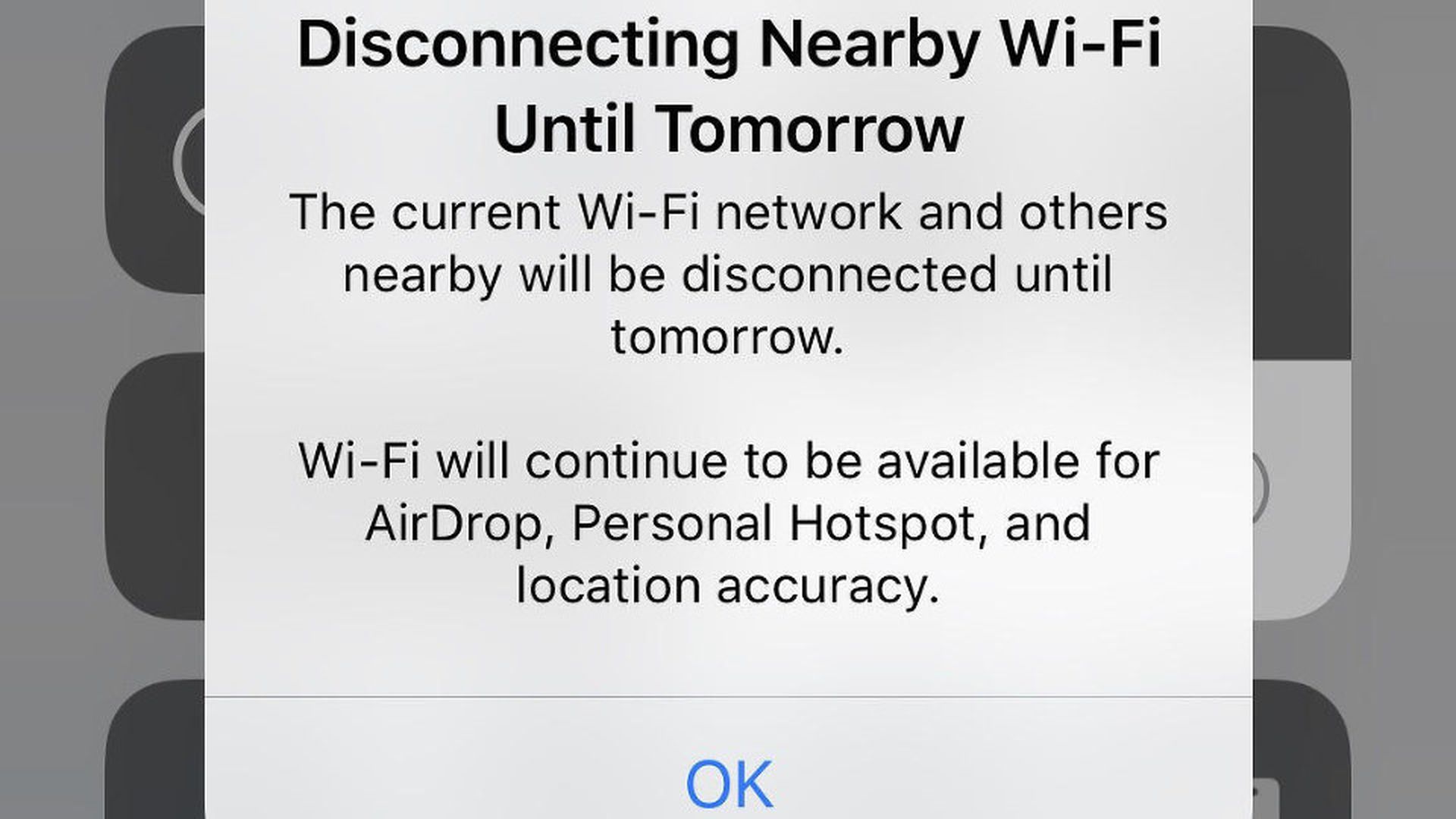 How it works: Turning off Wi-Fi or Bluetooth there doesn't actually turn off those radios, but instead just disconnects from the current and other nearby networks.That allows Wi-Fi and Bluetooth to remain available for a number of other uses, including AirDrop and AirPlay.
