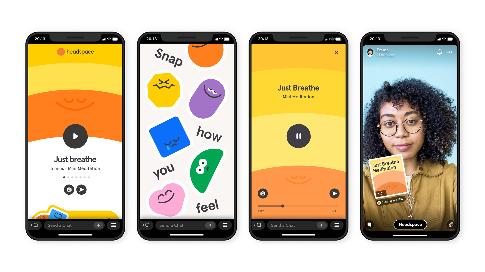 Snapchat is launching in in-app meditation experience with Headspace, a meditation app often used to help mitigate stress and anxiety. The feature will include expert resources related to emotional and physical well being for users during the pandemic and beyond.