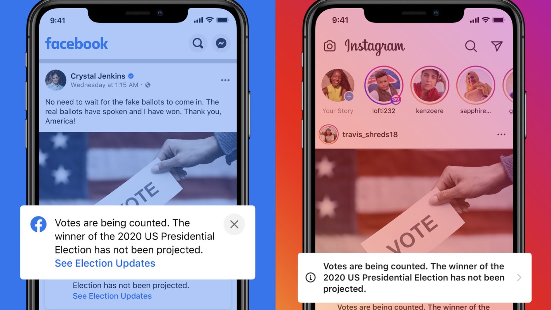 Facebook said Monday it would be relying on consensus results from the National Election Pool/Edison via Reuters, the Associated Press, and six independent decision desks at major media outlets to determine when a presidential winner is projected.