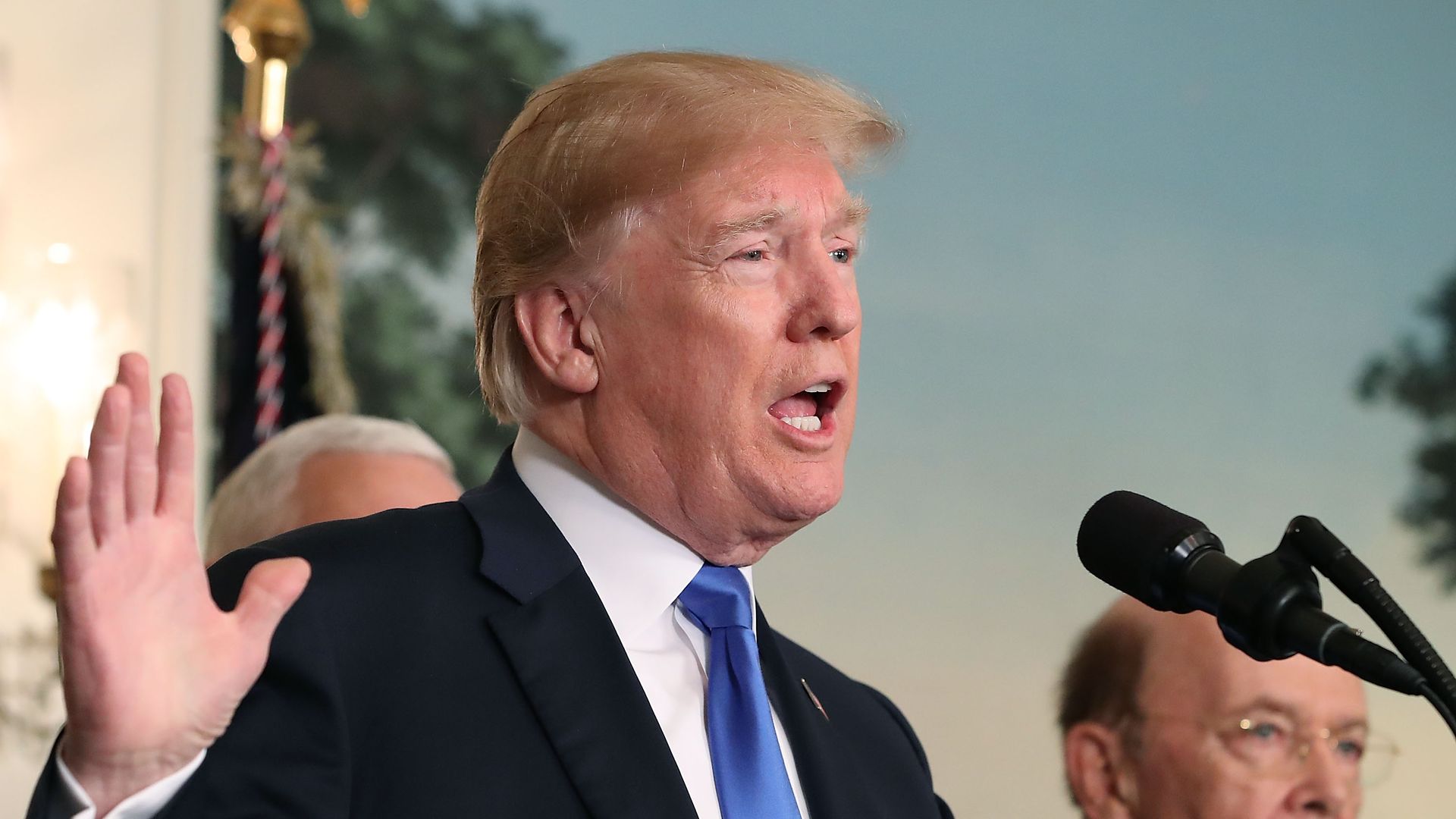 President Donald Trump and Vice President Mike Pence walk into the Diplomat Room.