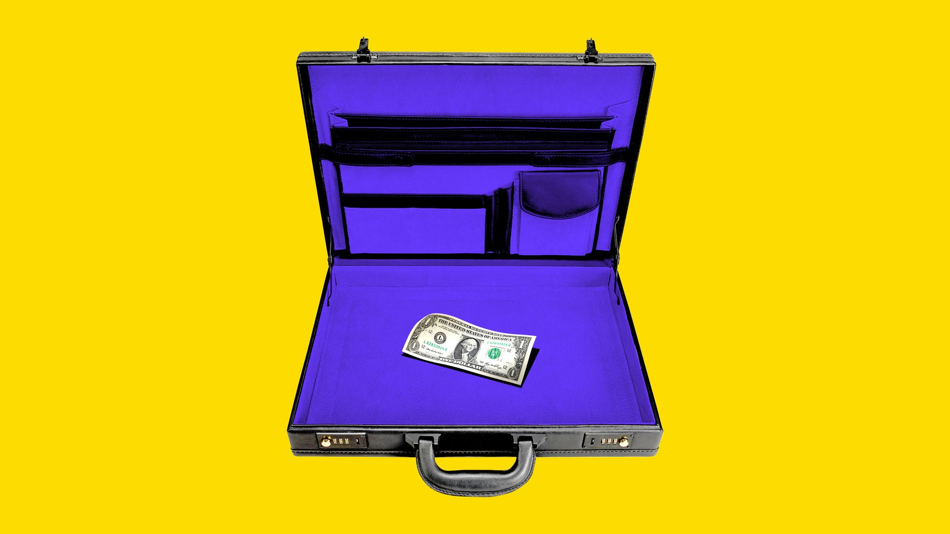 An illustration of Air Force One, with Donald Trump's signature in the place of the trails from the plane