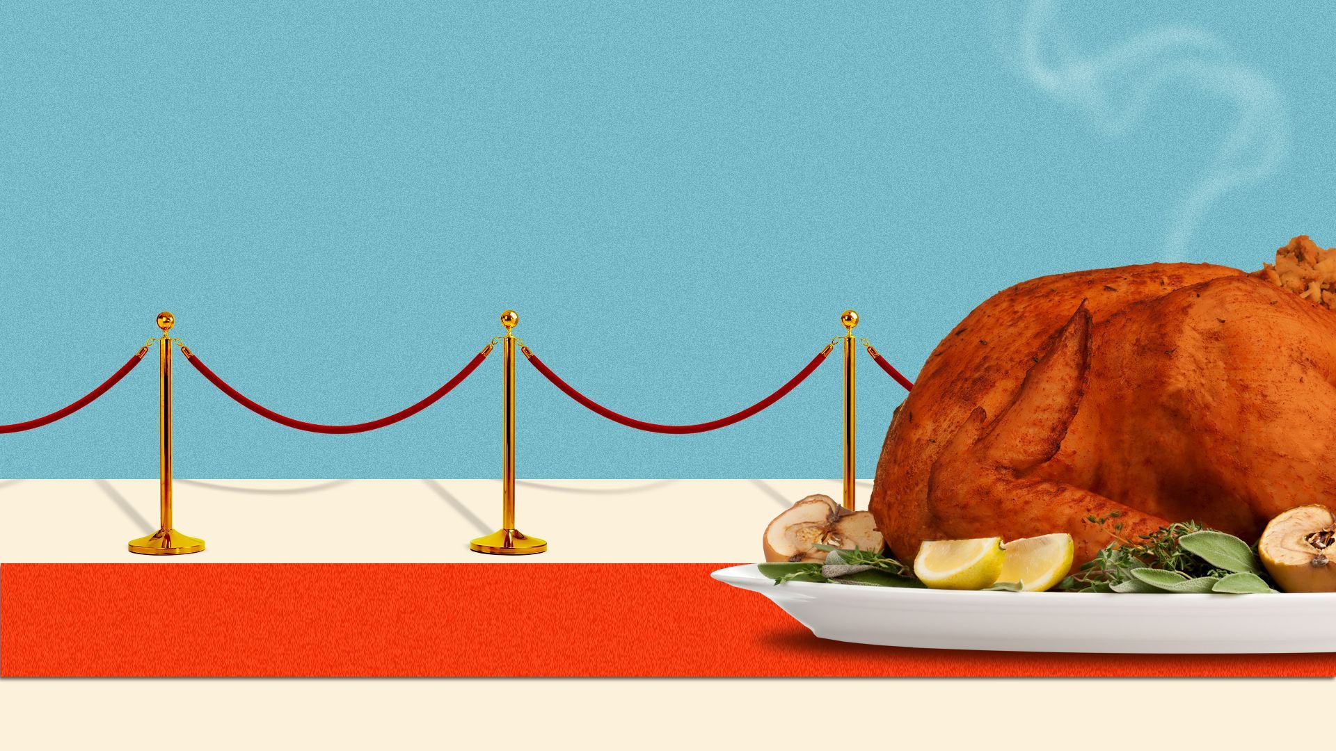 Illustration of a vaccine syringe poking into a cooked Thanksgiving Day turkey