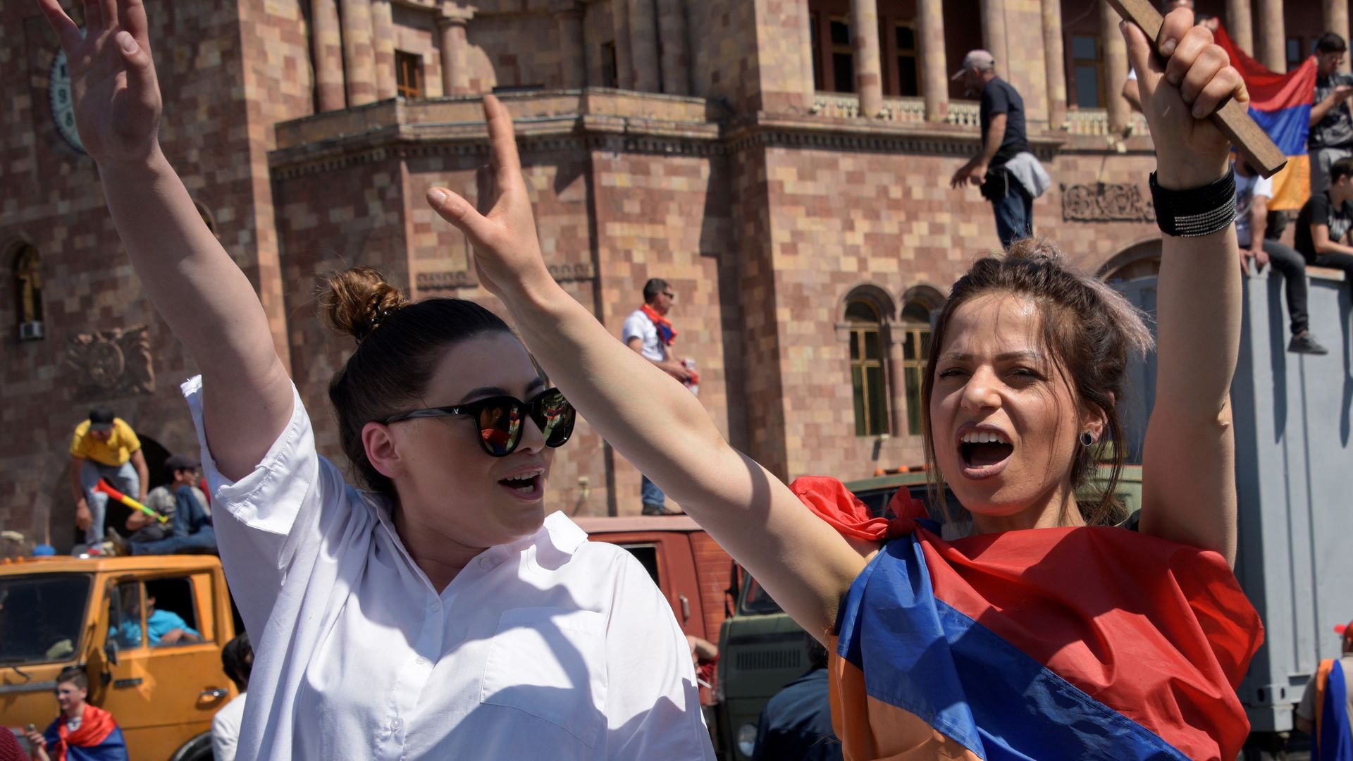 Why it matters: After three weeks of demonstrations, the old order in Armenia is wobbling. "The crisis in Armenia, which has a population of only about three million people and a Russian military base on its territory, is being closely watched in Moscow," per the AP, which notes that protesters are up against "a ruling elite which is determined to hold on to power and still controls the security apparatus."