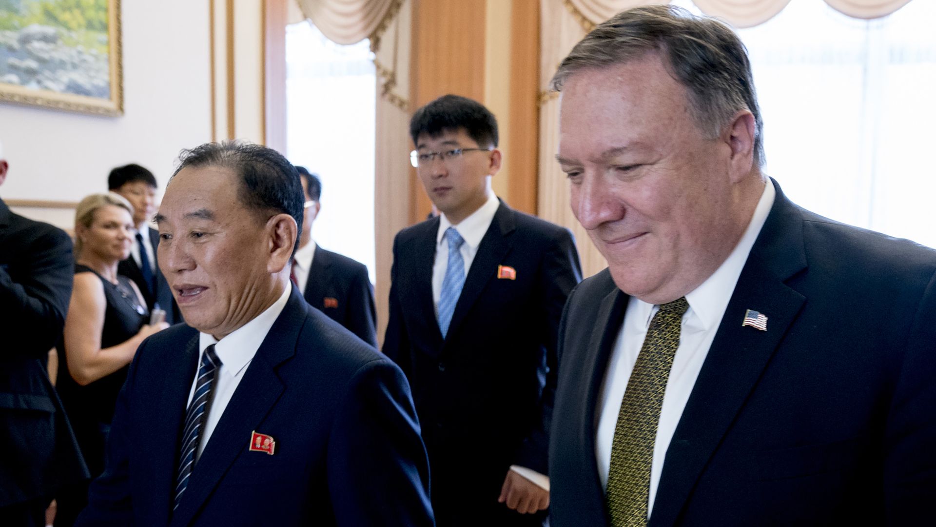 The big picture: But then Pyongyang issued a statement accusing Pompeo of trying to jam them with denuclearization demands: "The U.S. is fatally mistaken if it went to the extent of regarding that [North Korea] would be compelled to accept, out of its patience, demands reflecting its gangster-like mindset."