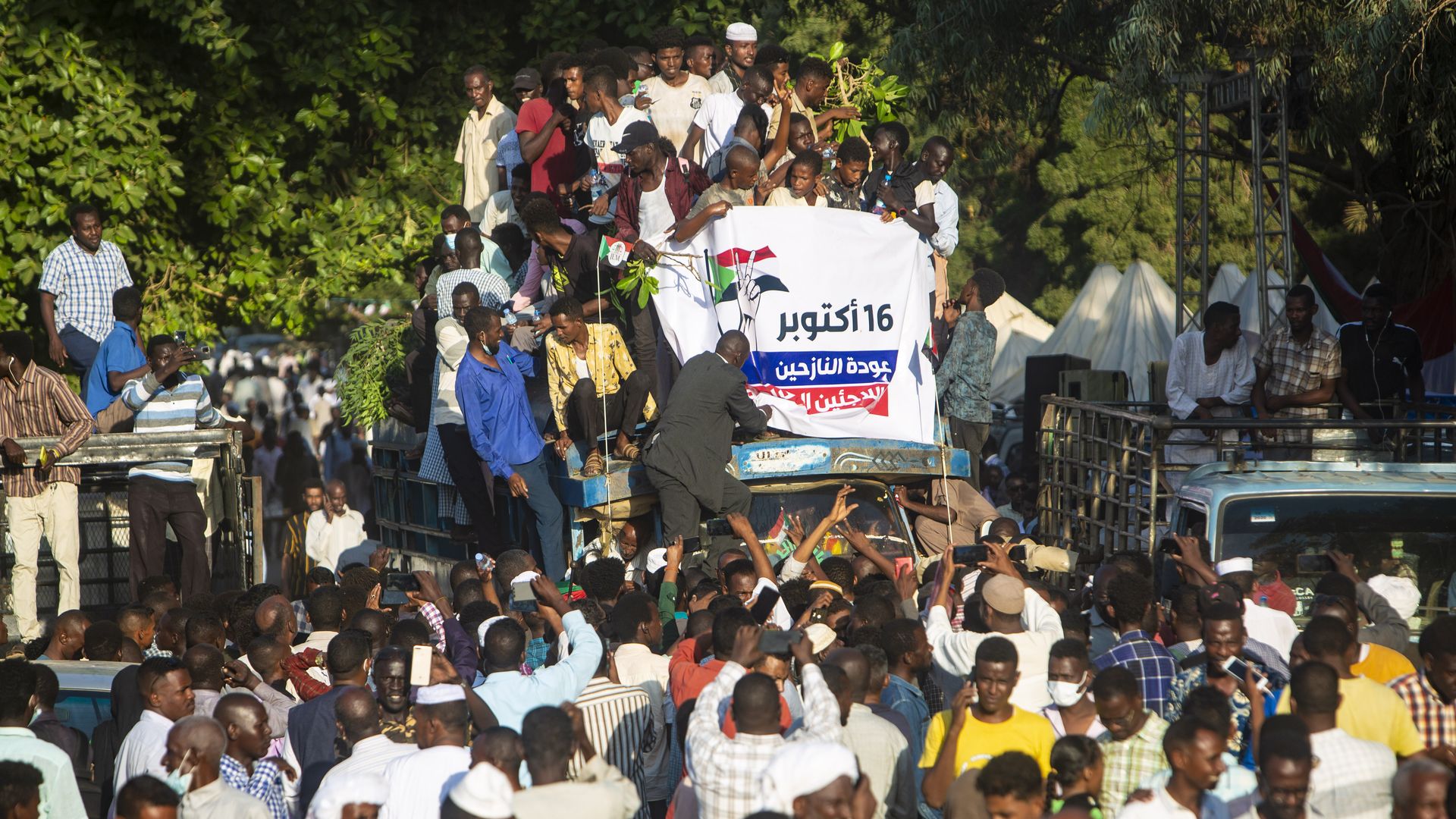 Driving the news: Roughly 2,000-3,000 people had joined a sit-in in Khartoum as of this afternoon, per Reuters, after protesters massed over the weekend to call on the military to bring down the government. The protests came just four weeks after a failed military coup.