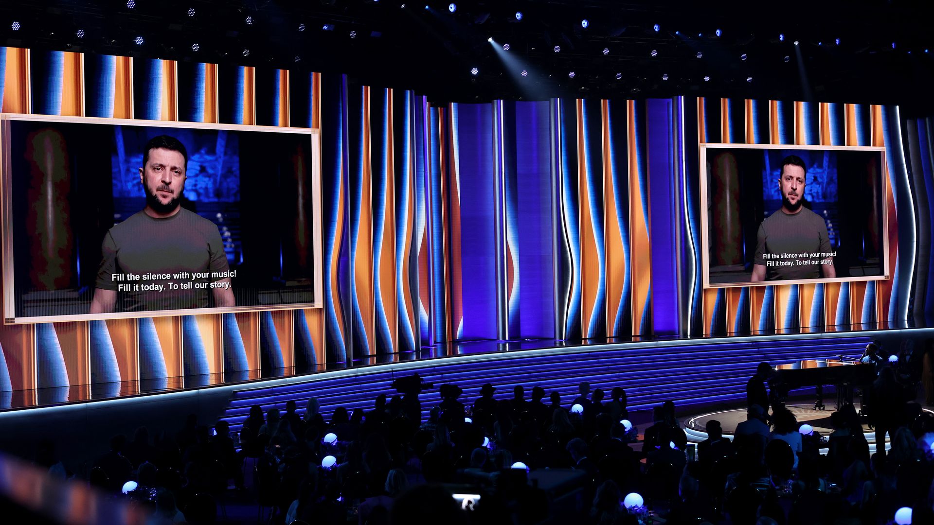Zelensky asks Americans not to stay silent in emotional Grammys cameo